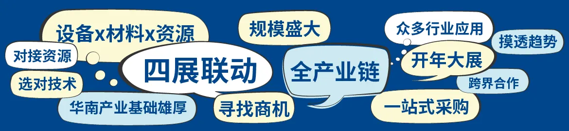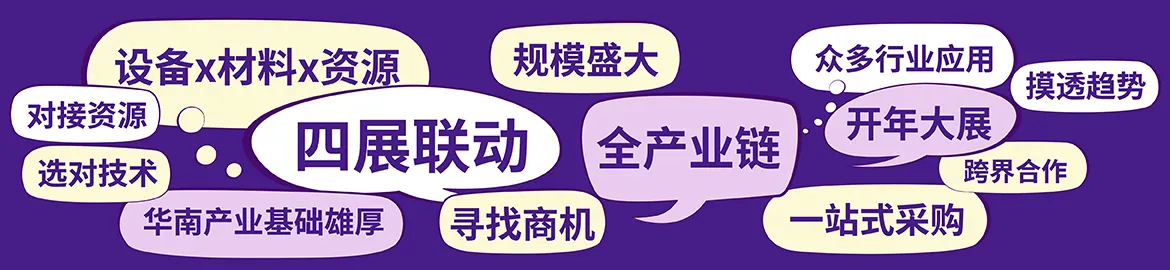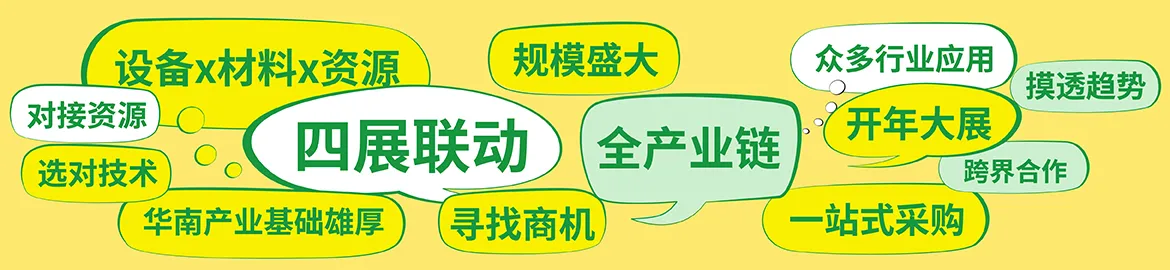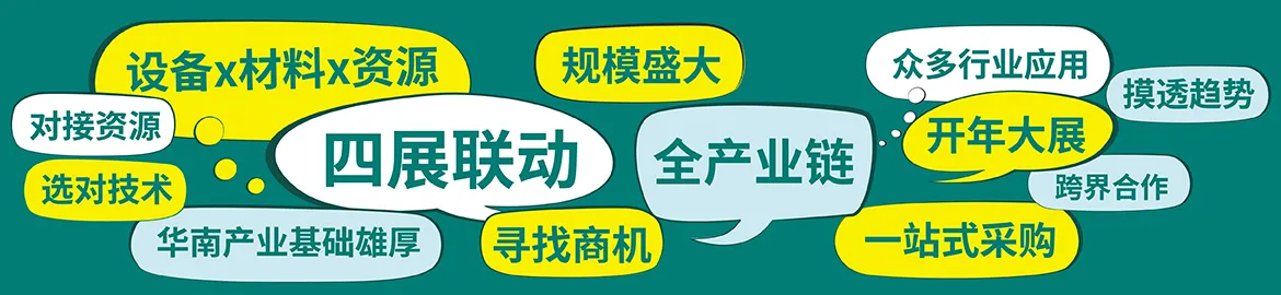「中国国际标签展」、「华南国际印刷展」、「中国国际包装工业展」、「包装制品与材料展」,四展联动,已发展为全面覆盖印刷、包装、标签及包装制品四大范畴的国际性展会,为行业买家提供一站式采购平台,助力企业拓展新机遇!